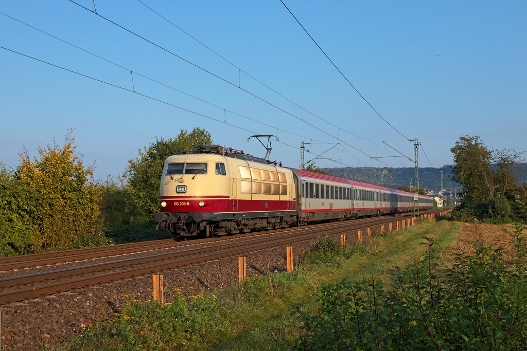 Ein tolles Foto und ein super Fotostandort. Und dann noch eine 103 vor dem IC bei bestem Wetter. Das Bild gefällt mir ausgesprochen gut.