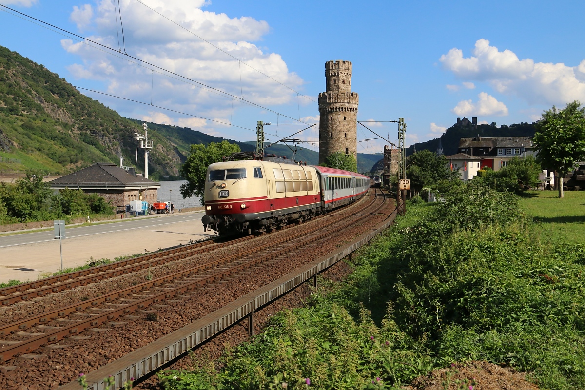 Im schönsten Licht aber fast von der MRB zugefahren... 103 235-8 mit dem IC 118 in Richtung Koblenz. Aufgenommen am 16.07.2014 in Oberwesel. (zum Bild)