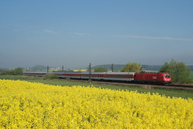 1016 035 (railjet - Vordesign) mit OEC 162 bei Übersee (27.04.2007) (zum Bild)