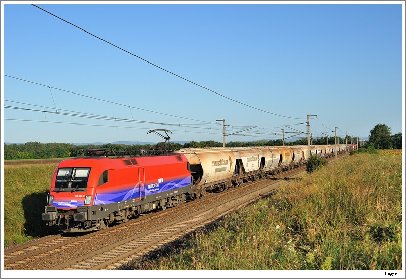 Den sah ich gerade noch, als ich Richtung Gn fuhr, aus der Ferne;-) Schönes Foto. Würde doch interessant aussehen, wenn die gesamte Lok so beklebt wäre.