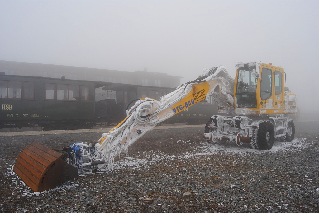 Zweiwegebagger der NTG - Bau auf dem Brocken. (06. April 2012) (zum Bild)
