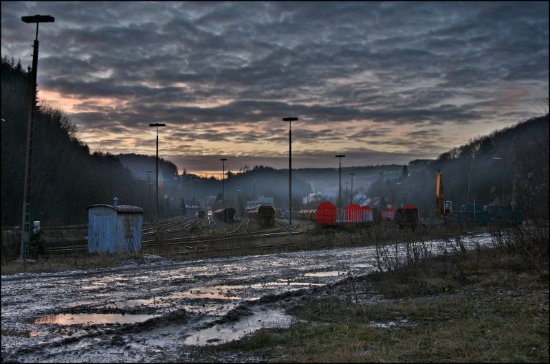 Waggons zusammengewürfelt, Lok beschmiert, so richtig schön schmuddelig....:). Finde das Foto schön!