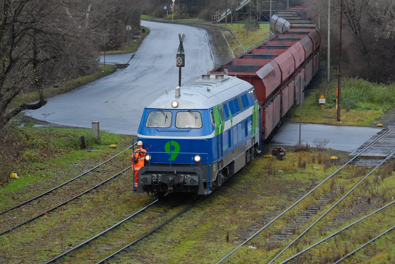Nach einer Stunde kam die „Vogelbahn“ dann wieder zurück und wir konnten sie dann vor der Zuckerfabrik ablichten. Bahnbilder Treffen Regensburg, 14.03.2009. (zum Bild)