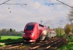 ein Knallerbild, der rote Thalys macht sich richtig gut in der grünen Frühlingskullisse und der blaue Himmel passt perfekt dazu. Die Fotostelle ist super, schade das die Strecke zwischen Köln und Aachen nächste Woche wieder frei ist.