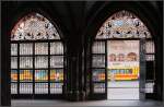 Diese Aufnahme war eine spontane in dieser Situation. Ich wollte dann sie nochmals bewusst wiederholen, mit der Front einer Bahn innerhalb des offenen Tores. Aber irgendwie wollte es nicht so richtig klappen. Mit grünen Bahnen funktioniert das Bild nicht und sonst waren immer irgendwie Passanten ungünstig im Bild. So blieb das erste Bild, das Brauchbarste.