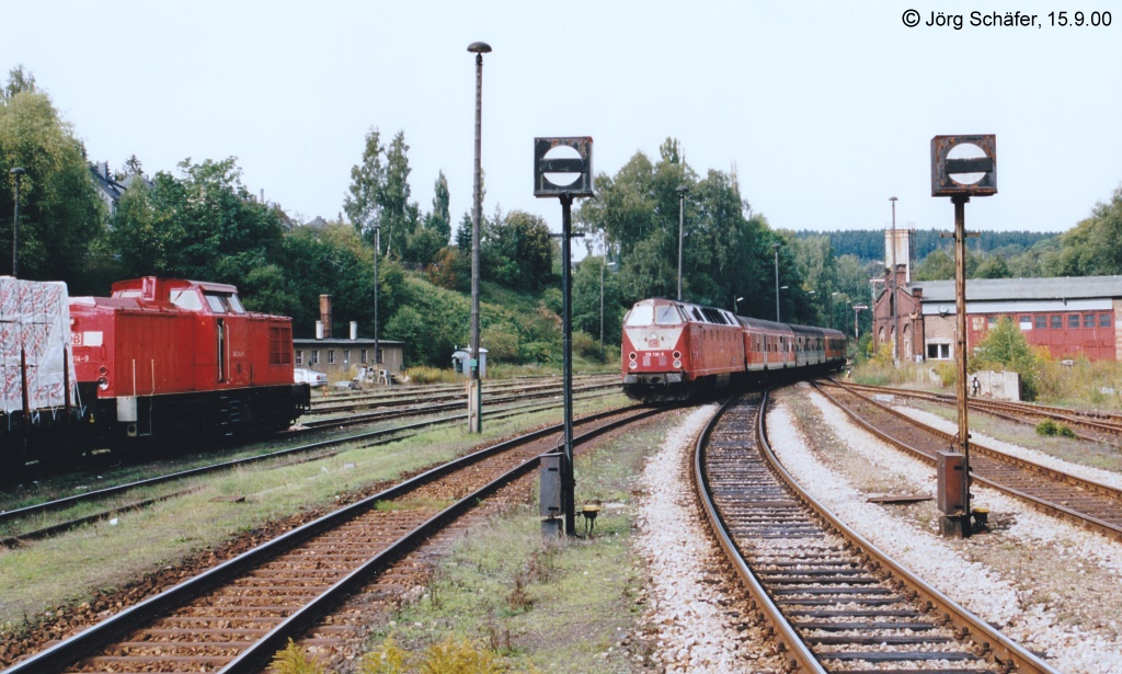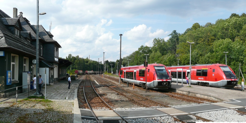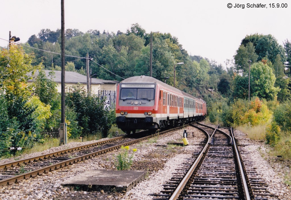 Die Ausgestaltung als Keilbahnhof ist gut zu erkennen, schönes Zeitdokument. Leider ist ja der rechte Zweig (in Richtung Triptis) schon längere Zeit stillgelegt, eine der schönsten Bahnstrecken Deutschlands