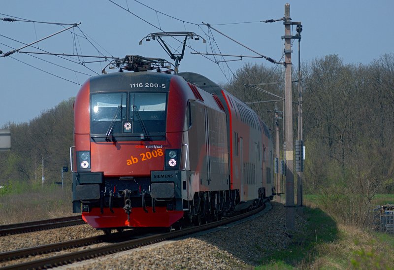 Wunderschönes Bild der 1116 200 im eleganten roten Railjet-Design!