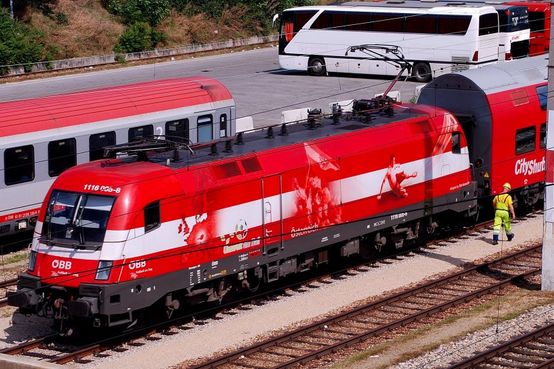 Die blaue UEFA Lok 1116 080 kann man vom blauen Himmel fast nich unterscheiden!