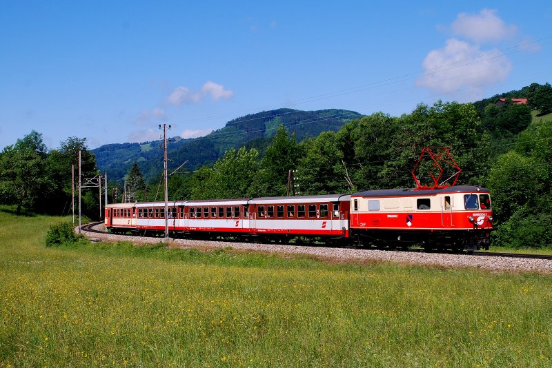 Trotz dass ich eigentlich für meine Englisch-Schularbeit lernen musste, fuhr ich mit meinem Papa nach St.Pölten, um die Lok zu fotografieren. Planmäßig wäre sie um 18.00 gekommen. Da sie aber auch diesem und auch nicht am nächsten Zug bespannte, machten wir uns auf den Weg zum Auto. Gerade in diesem Moment kam sie!
