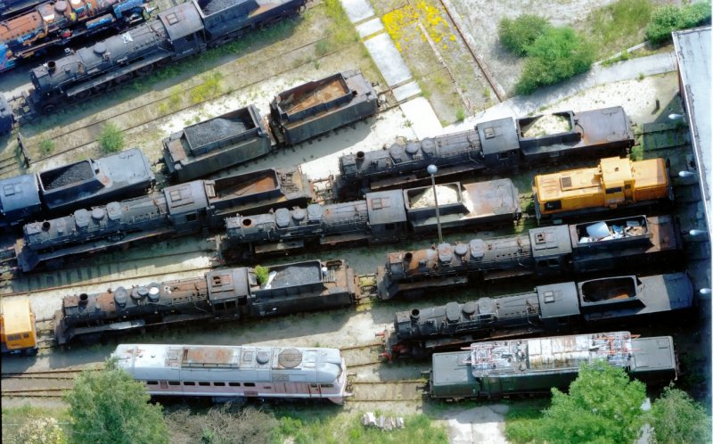 Was mir beim Betrachten der Fotos aufgefallen ist - das ist kein Lokfriedhof, sondern eine Sammlung von Lokomotiven, die bereits vor oder auf einem Schrottplatz standen - diese stehen wie in einer Vitrinen-Sammlung sauber eine an die andere gereiht, aufgestellt - aber nicht um zerlegt zu werden.