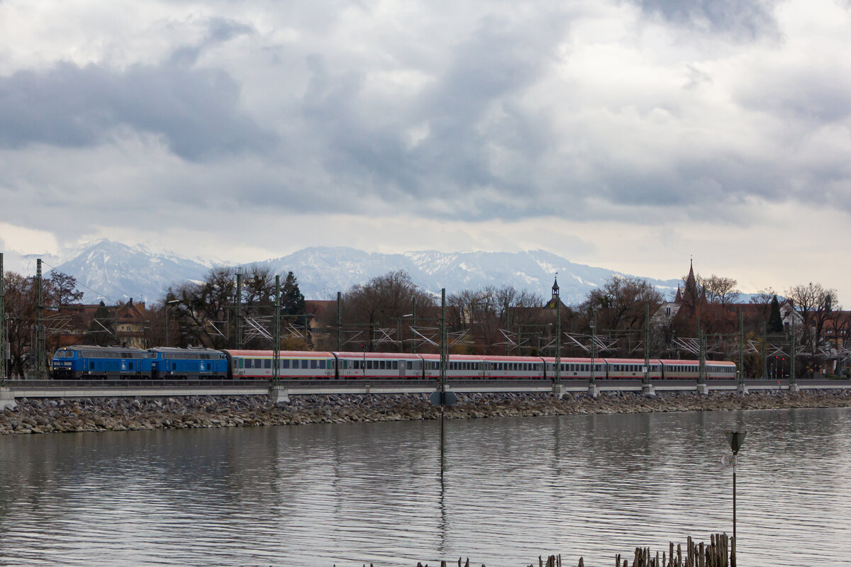 Deine Aufnahme vom "Blauen Doppel" mit den Wagen des IC Bodensee gefällt mir.