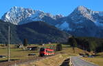Oberhalb von Garmisch Partenkirchen war von dem Nebel nicht mehr zu sehen. 2442 207 war derweil als RB6/S6 (Innsbruck - Garmisch Partenkirchen) unterwegs. Klais, 20. November 2021 (zum Bild)