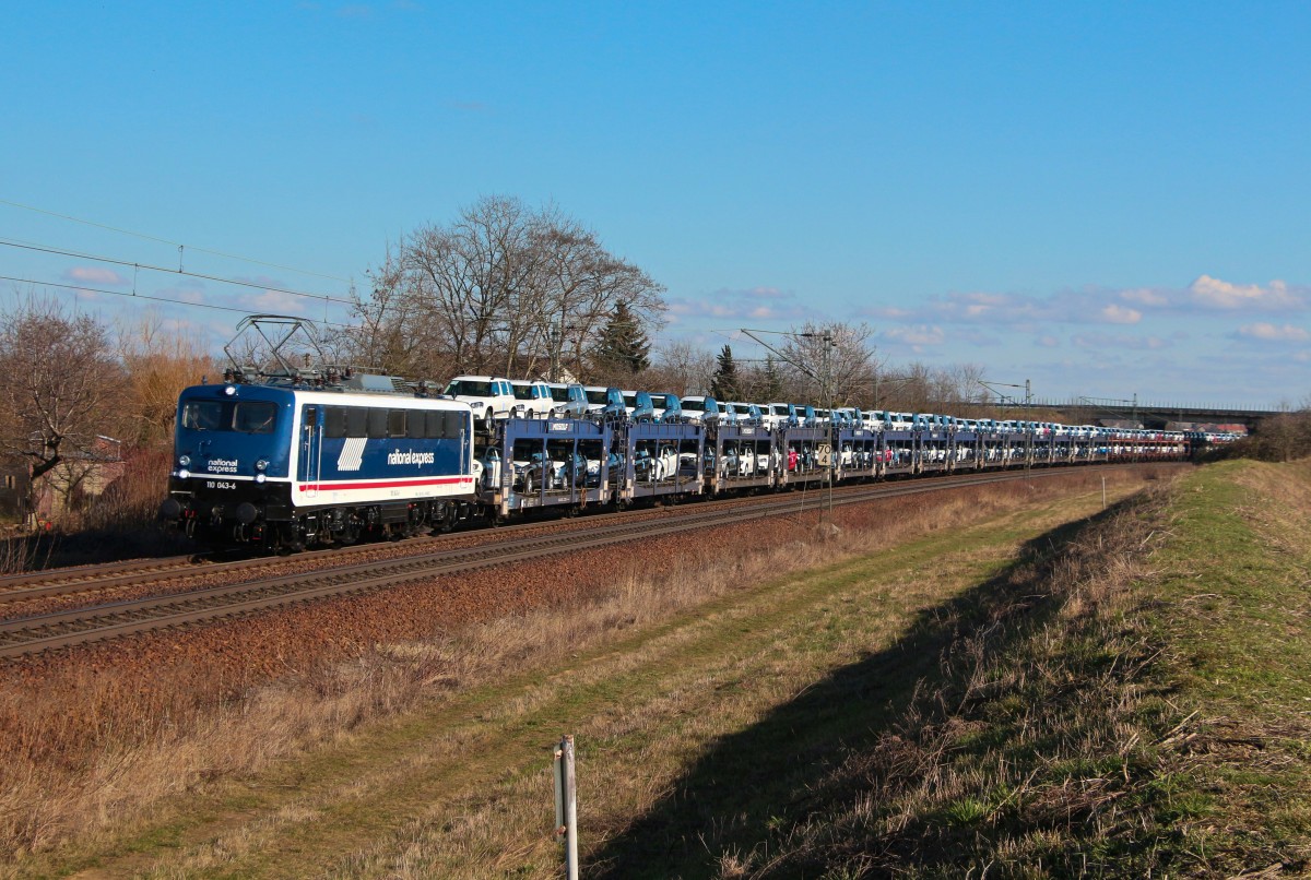 ein wunderschönes Bild von der 185 111-2 mit dem Taschenwagenzug.