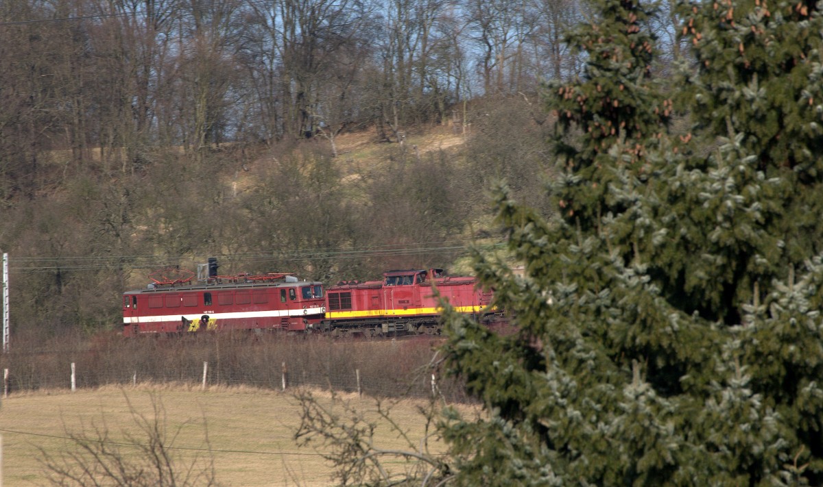 Hallo Stefan, hallo Thomas, danke für die Info, wo das Duo hinfuhr.Ich muß Dir recht geben, ich hätte das Duo lieber an der Stelle abgelichtet, wo ich die Ludmilla "schießen " konnte. Leider waren die Schranken geschlossen und 2 Hamsterbacken schossen vorbei.Wieder auf das Rad gestiegen , Zuggeräusche von der oberen Strecke,Tandem stoppen, meine Frau absteigen lassen und die Kamera gezückt, es ist wirklich nur ein "Zufallsschnappschuß" Als ich dann an der oberen Strecke stand, kam unten ein Kesselwagenzug mit einer mir unbekanten E-Lok. also wieder am falschen Ort.. m.f.G Siegfried