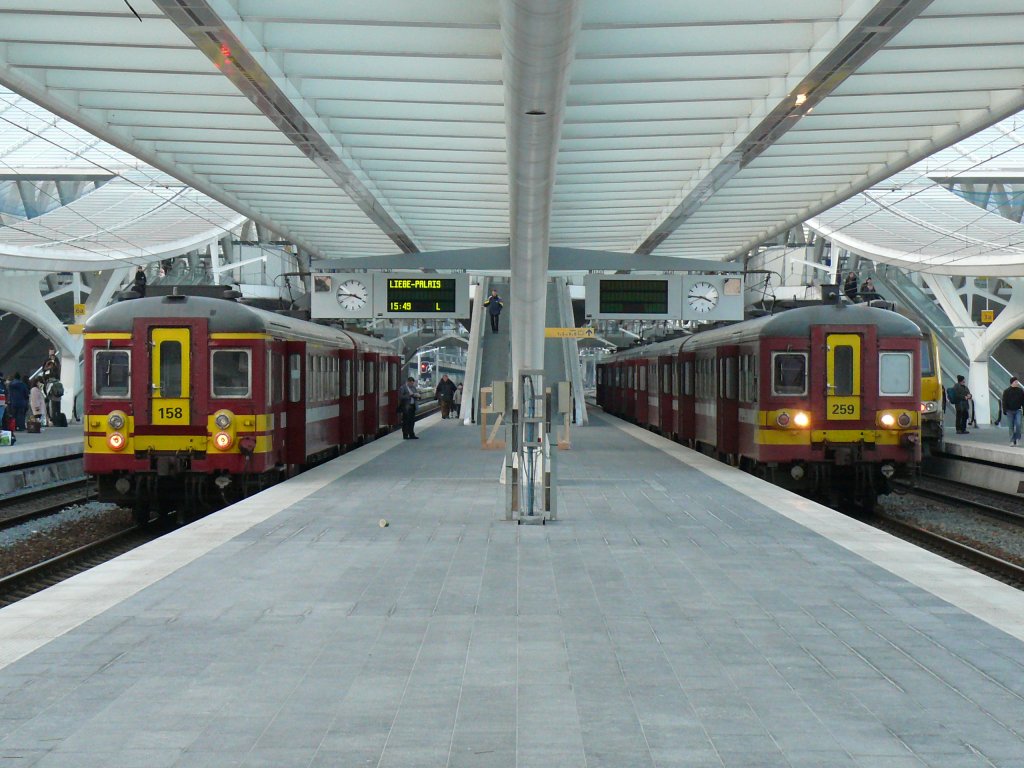 was mich an diesem Bild faziniert sind die schon etwas angestaubten Triebzüge in dem futuristisch wirkenden Bahnhof in Liège-Guillemins. Eine schöne Aufnahme die mir gefällt.