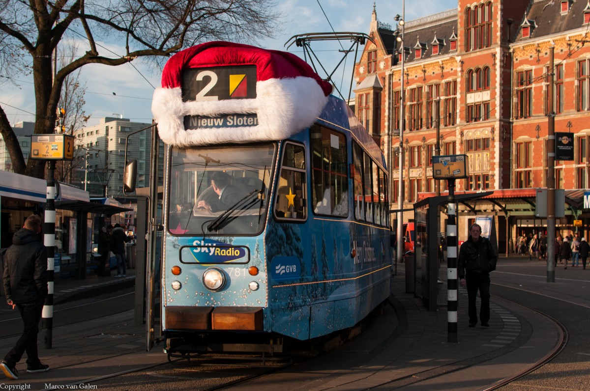 Die GVB 781 (Weihnacht) unterwegs auf linie 2 nach Nieuw Sloten am 12 december 2013. (naar de afbeelding)