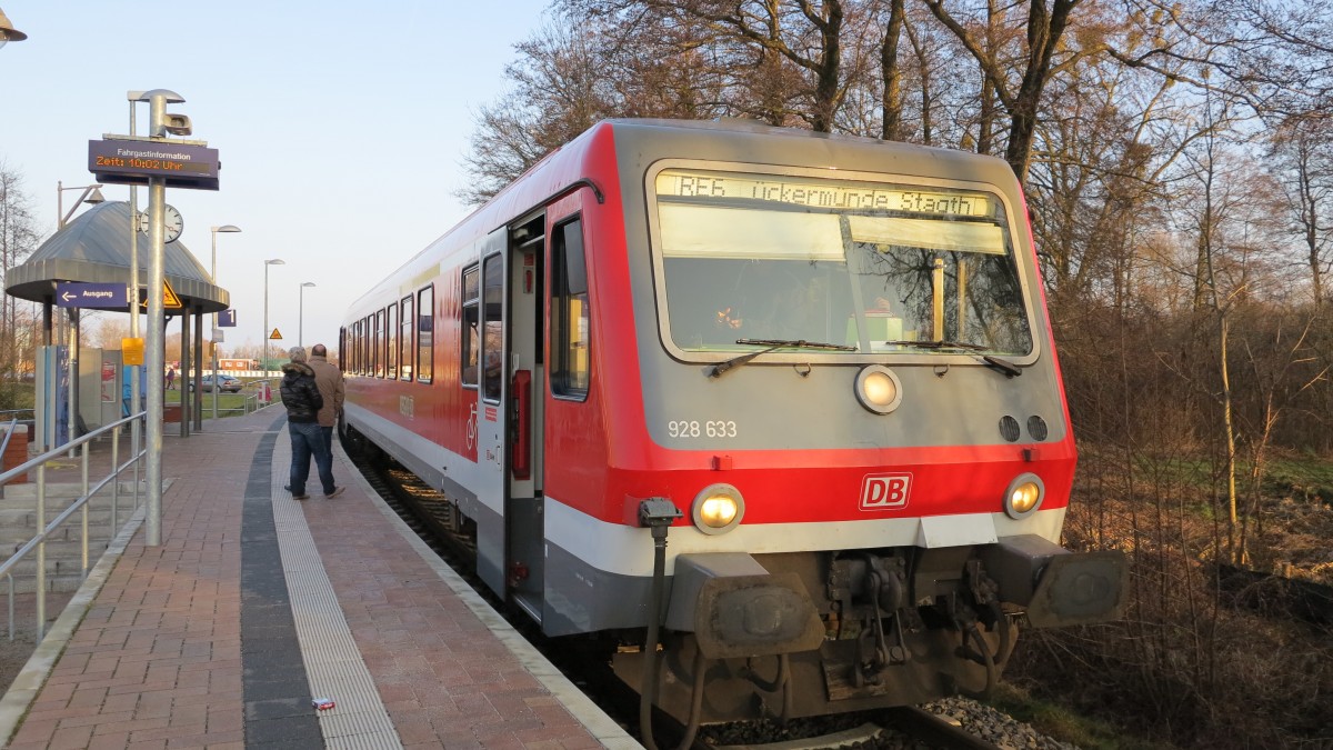 Mit VT628 633 in Ueckermünde Stadthafen am 27.12.2013 (zum Bild)