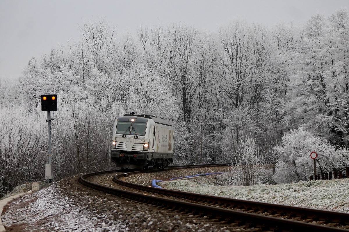 Vectron goes Diesel! Im Zuge von Testfahrten kam 247.901 in die Steiermark um auf dem ersten Teilstück der Koralmbahn ausführliche Tests durchzuführen. Als Highlight wurde der Probant am 19.Dezember 2013 vor einen Perlkieszug gespannt der den Triebfahrzeugen beim Anstieg nach Deutschlandsberg und zur Leibenfelder Höhe einiges abverlangt. (zum Bild)