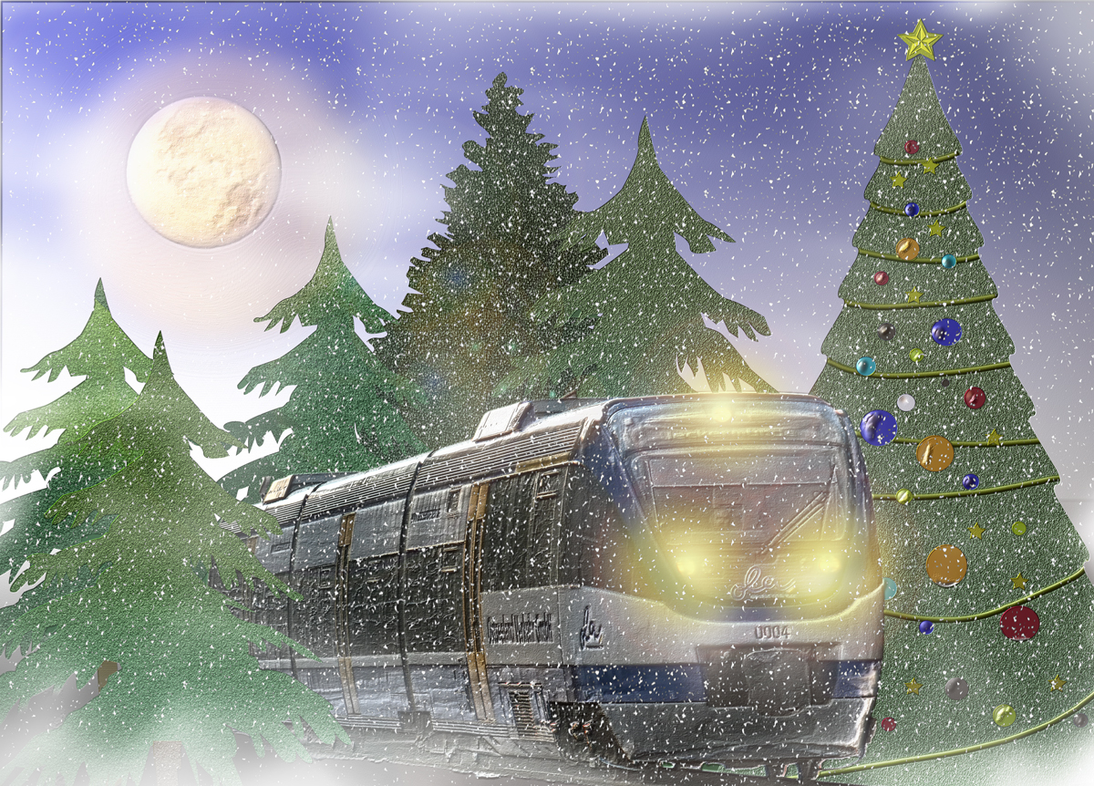 eine wunderschöne Aufnahme von dem farbenfrohen Triebzug.