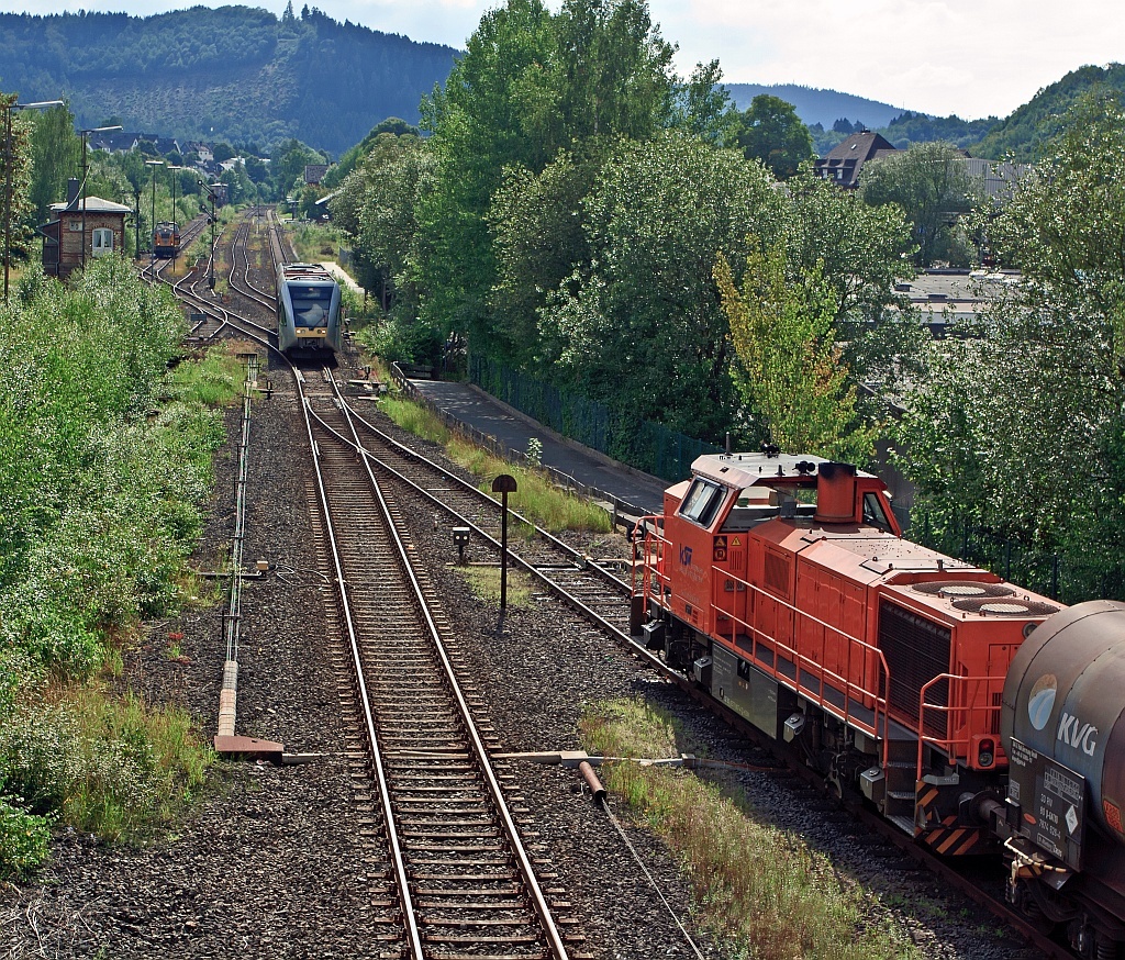 Kurzzeitig war hier viel Betrieb, weil zwischen Siegen und Haiger Gleiserneuerungen waren. Sonst findet man auf der nicht elektrifizierten Strecke nur die HTB und KSW an.