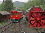 Und rechts davon steht die Rhätische Dampfschneeschleuder der RhB, Xrotm 9212.
