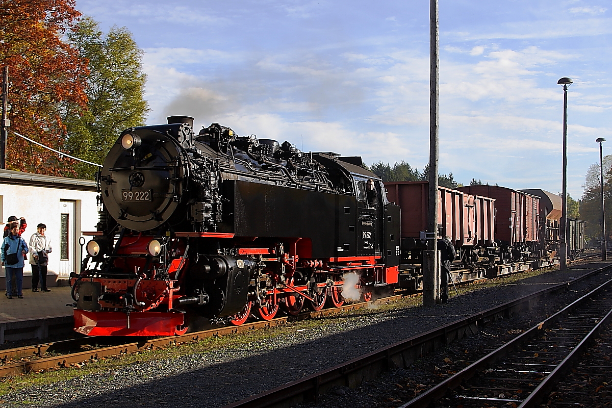 eine sehr schöne Aufnahme des Foto-Güterzuges der HSB mit der 99 222, gefällt mir sehr gut.