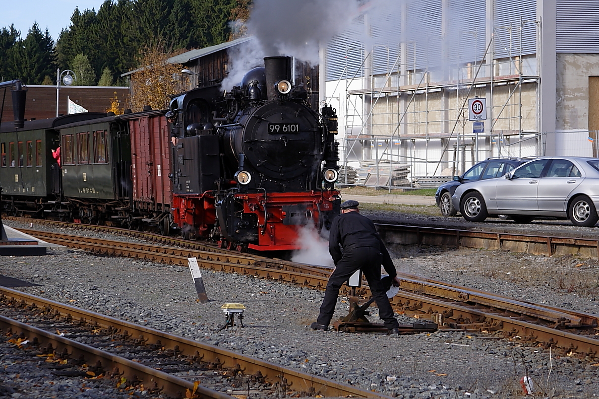 eine sehr schöne Aufnahme von der Scheinanfahrt der 99 6101, schöne Licht- und Raucheffekte, gefällt mir sehr gut.