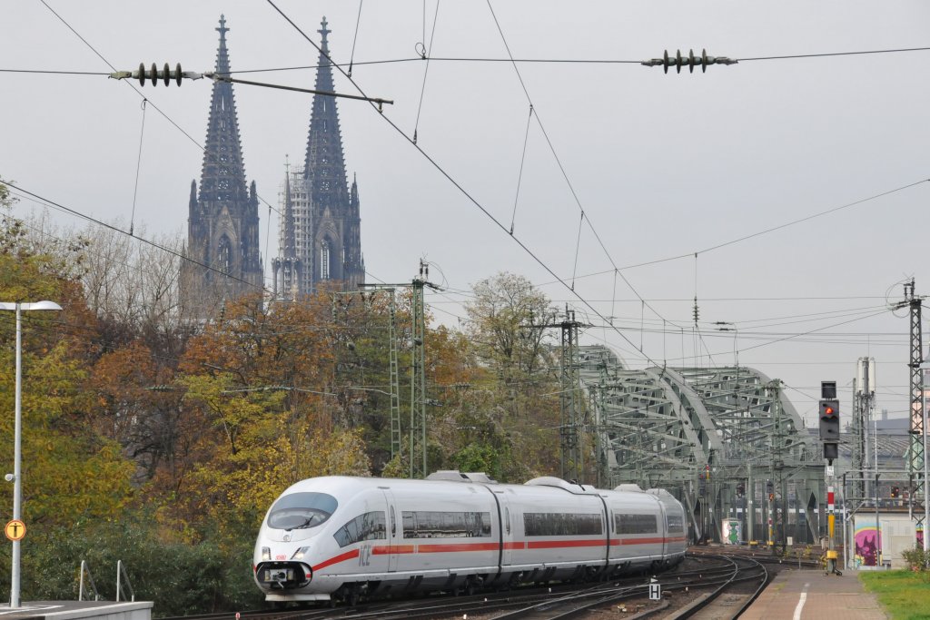 klasse Bild vom ICE mit dem Kölner Dom im Hintergrund.