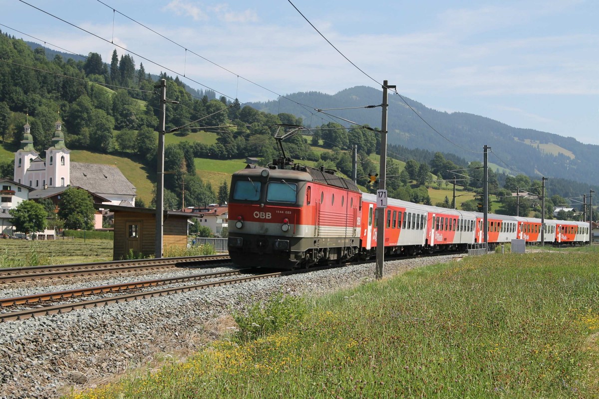 1144 023 mit S 1509 Wörgl Hauptbahnhof-Salzburg Hauptbahnhof bei Brixen im Thale am 26-7-2013. (zum Bild)
