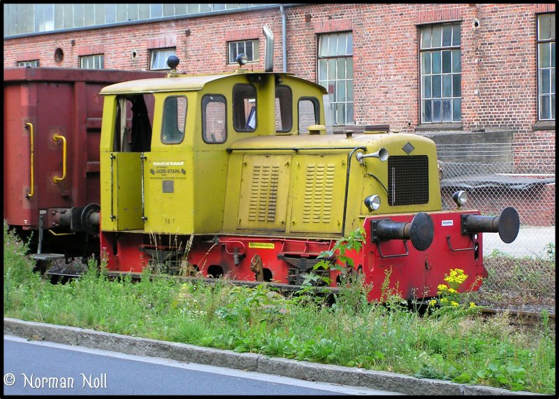 „Diese Diesellok hat eine interessante Geschichte: Sie gehörte einst dem Kraftwerk in Emden und war damals noch grün lackiert. Eingesetzt wurde sie dort für den Transport von Kohle – ein echtes Arbeitstier, das viele Jahre zuverlässig im Einsatz war. Heute ist sie ein schönes Stück Industriegeschichte.“
