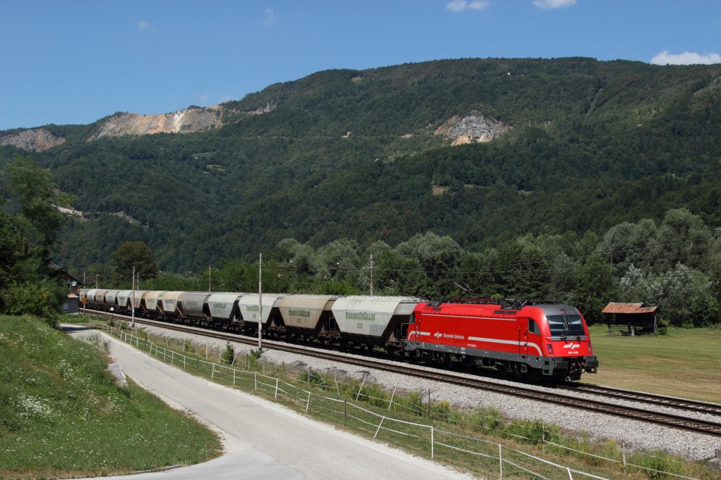 SZ 541 012 zieht am 01.08.13 einen Getreidezug in Richtung Zidani Most. Hier bei Kresnice. (zum Bild)