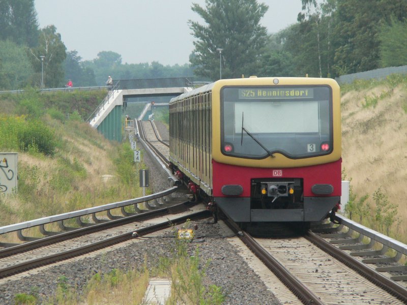 S25 nach Hennigsdorf fährt aus dem Bahnhof Teltow Stadt aus. 12.8.2007 (zum Bild)