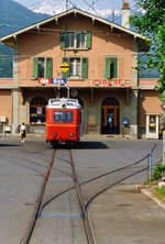 Schweizer Privatbahn Bex-Villars-Bretaye, BDeh 2/4 Nr. 23 vor dem Bahnhof Bex. Datum: 19.05.1986 (alla foto)