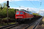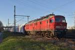 Mit einem Kalkwagenleerzug ist die Ludmilla 232 254-3 nach Rhodenhaus unterwegs am Abend des 27.3.2017 (zum Bild)