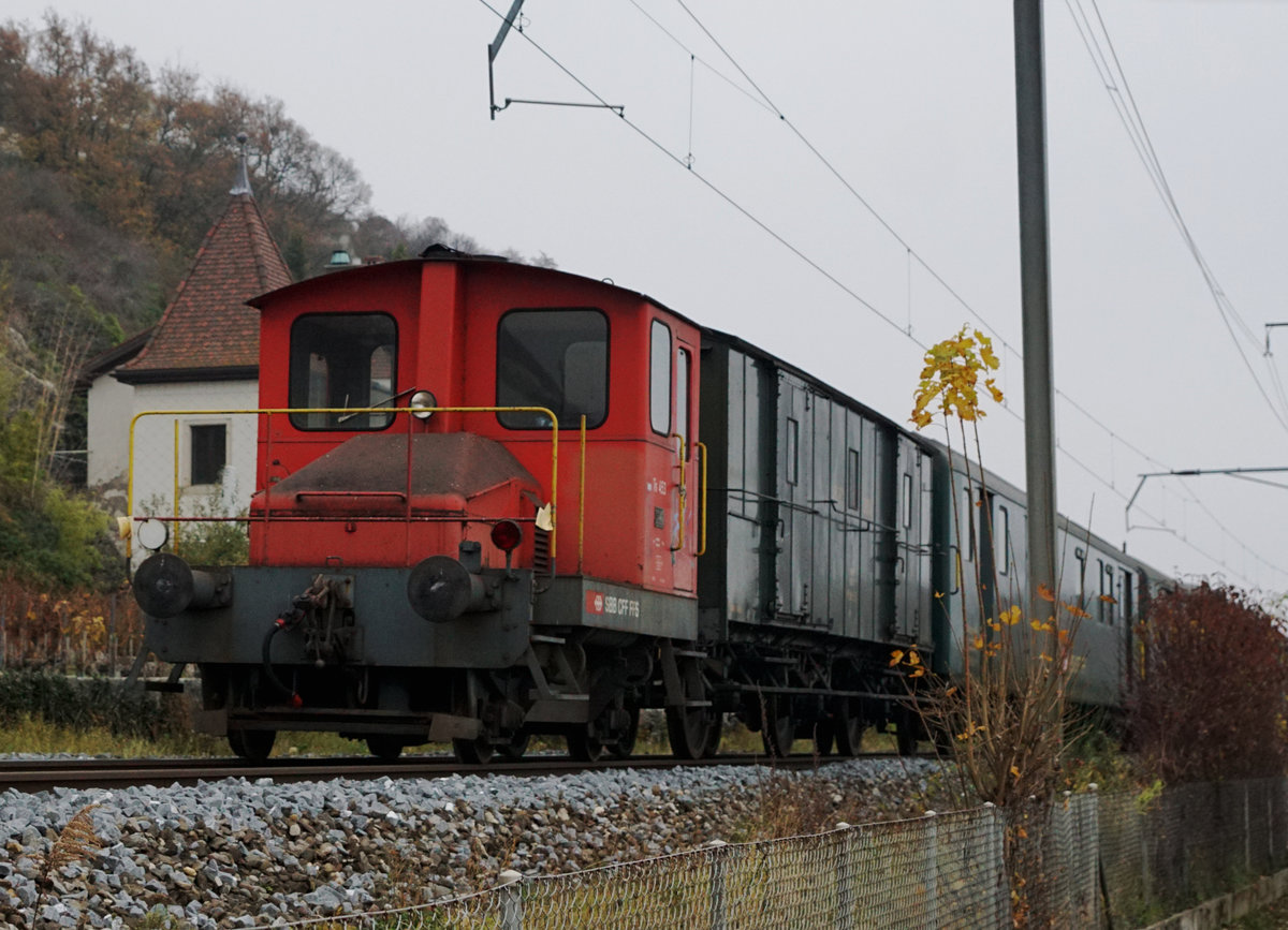 Der Rauch der Lok und der relativ "klobige" Fahrleitungsmast" weisen unübersehbar auf die Diskrepanz hin: Dieselbetreib auf elektrifizierten Strecken...