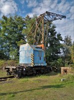 18. Leipziger Eisenbahntage: 15.10.2016 - der Eisenbahnkran EDK80 Nr. 58 des VEB Schwermaschinenbau "S.M.KIROW" Leipzig, Baujahr 1958 auf dem Gelände des Eisenbahnmuseums Leipzig-Plagwitz. (zum Bild)