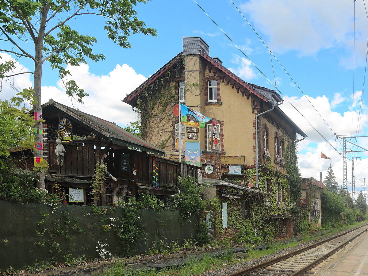 Und wenn es dumm läuft fällt das etwas lädierte Bahnhofgebäude beim nächsten kräftigen Wind auch noch auf das einzige Geleis.