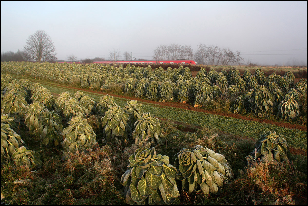 sehr schön wie sich die Triebwagen von der Landschaft abheben,