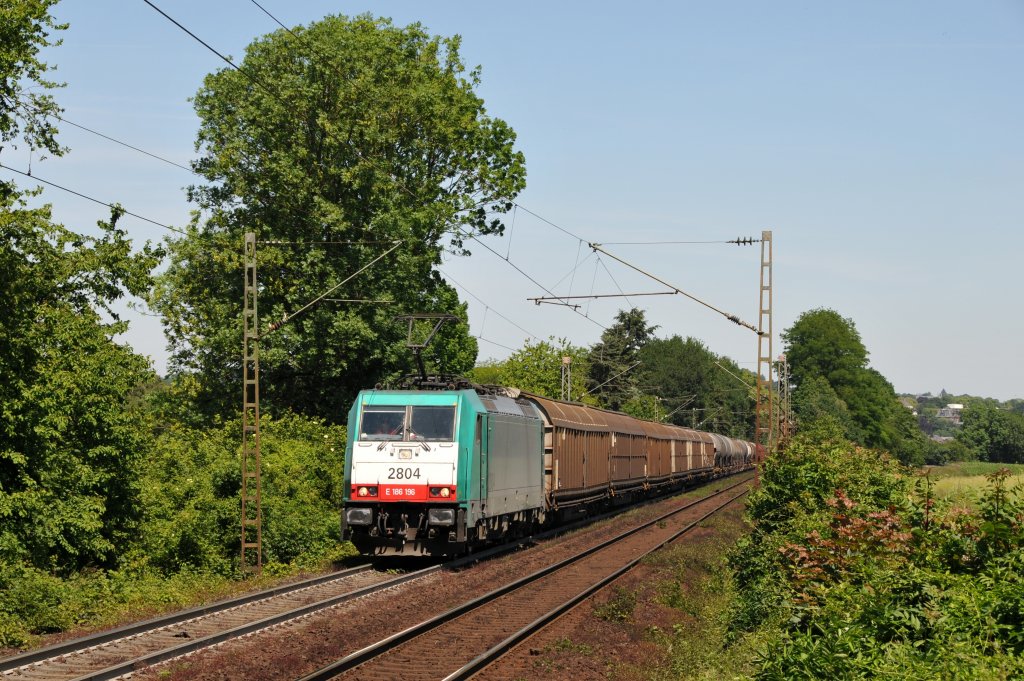 Auch Cobra-Lok 2804 präsentierte sich im besten Licht auf dem Weg hinauf zum Gemmenicher Tunnel zwischen Aachen-West und Montzen. Aufgenommen am 02/06/2011. (zum Bild)