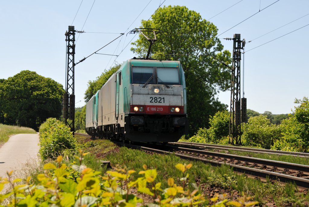Cobra 2821 mit Schwesterlok als Lokzug unterwegs nach Aachen-West. Aufgenommen am 02/06/2011 am Gemmenicher Weg in Aachen. (zum Bild)