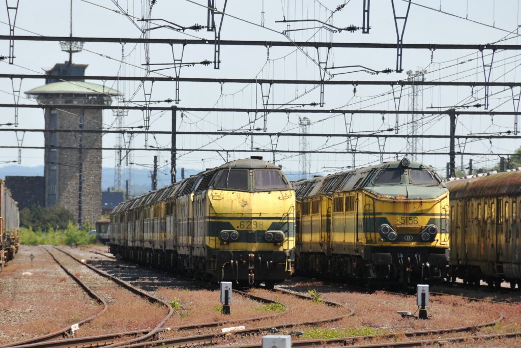 Seit Kurzem stehen alten Dieselloks auf zwei Gleisen nebeneinander im Bhf Montzen (in Front die 6298 und die 5156). Werden sie veilleicht für den Abtransport bereitgestellt ? Aufgenommen am 29/05/2011. (zum Bild)