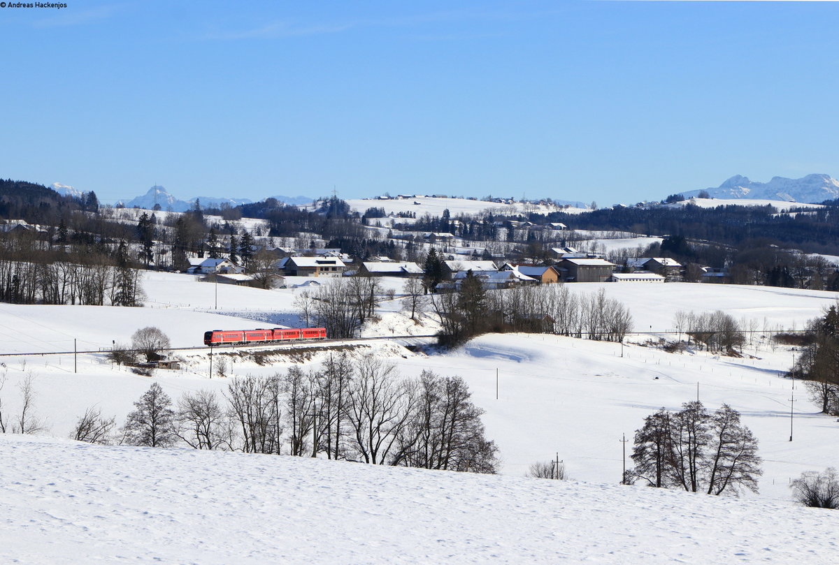 Zwei unbekannte 612 als RE 3289/RE 3389 (Lindau Reutin/Oberstdorf-Augsburg Hbf) bei Ellenberg 14.2.21 (zum Bild)