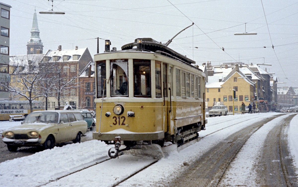 København / Kopenhagen Københavns Sporveje Arbeitstriebwagen / Salzwagen 312 Christianshavns Torv am 29. Dezember 1968.- Scan von einem Farbnegativ. Film: Kodacolor X. (alla foto)