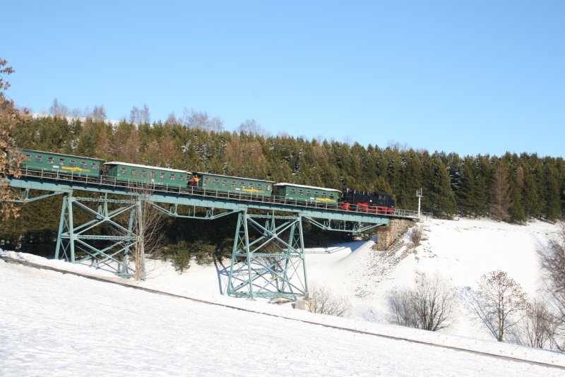 99 794 verlässt mit ihrem Personenzug an einem herrlichen Wintertag den Bahnhof Oberwiesentahl.30.12.08. (zum Bild)
