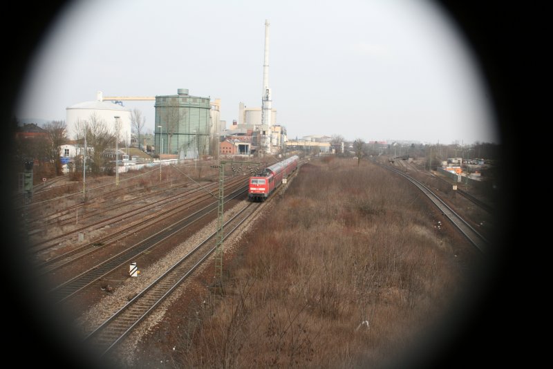 Eine Regionalbahn mal anders fotografiert.Im Hintergrund die alte Zuckerfabrik. (zum Bild)