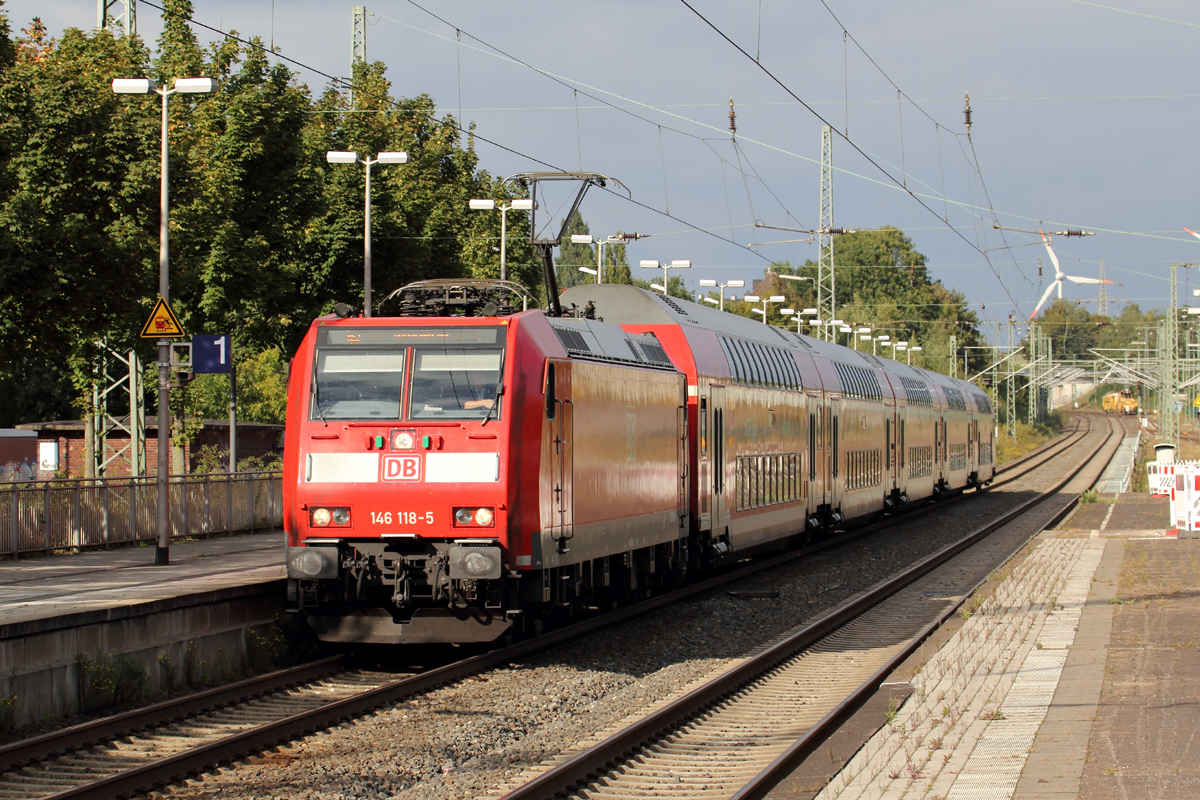 ein schönes Bild von der 146 118-5 DB mit dem RE2.
