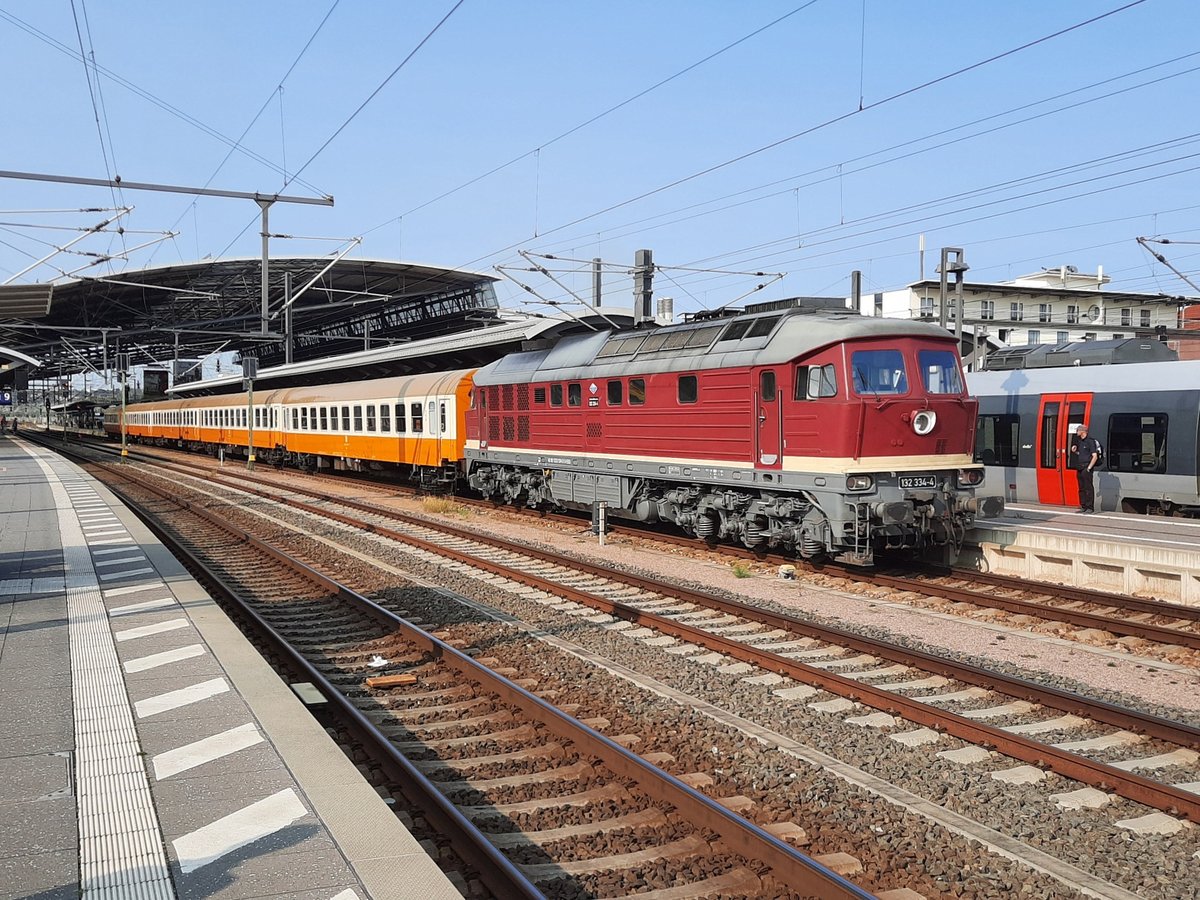EBS 132 334-4 mit dem DPE 30141 "Klassentreffen" nach Weißenfels über Straußfurt, am 12.09.2020 in Erfurt Hbf. (zum Bild)