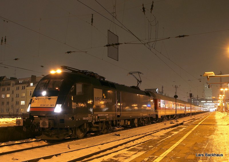 Blick entlang des AZ 13385 von Hamburg-Altona nach Bozen. Zuglok ist die sehr saubere ES 64 U2-061. (zum Bild)