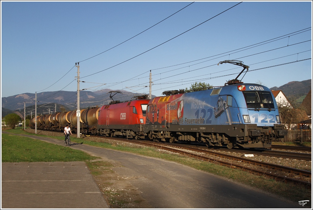 1116 250 Feuerwehr + 1116 137 fahren mit 54577 von Graz Vbf nach Villach Süd Gvbf. Spielberg 9.4.2011 (alla foto)