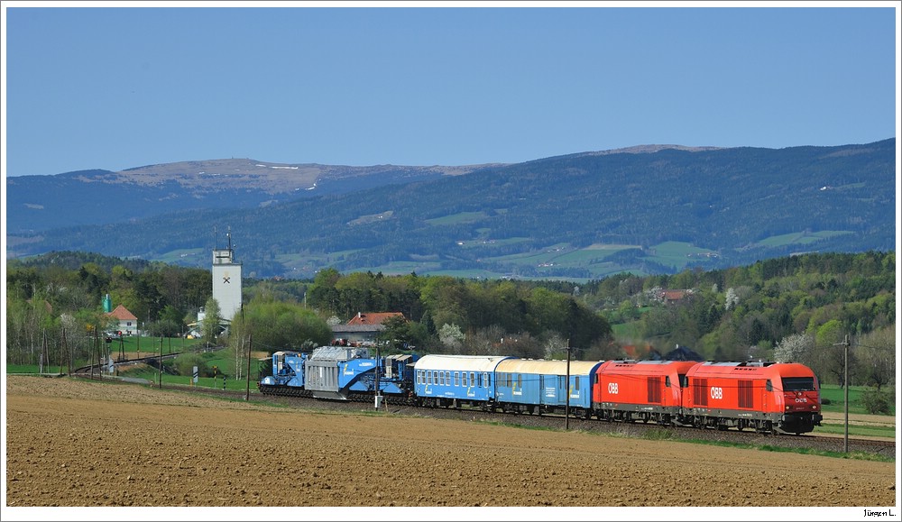 2016.017 & 2016.xxx mit dem Trafotransport 49180; hier kurz nach Grafendorf b. Hartberg; 10.4.2011 (alla foto)